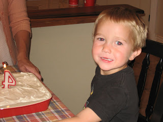 We celebrated our Tater's birthday this week...Twice. This is one of the perks of having half your family live three hours away, unless your one of the Porter Brothers, then its 2 hours 15minutes flat! So on Wednesday we had a wee party, then on Saturday we had a bigger one. Papa HP and Grandma Reda, Papa Charlie and Grandma Carol, Matt and Courtney, Lauren, Corinne and Maddy all made it to the festivities. We had a wonderful weekend eating cake and riding the 50s.(Hee hee...didn't we Corinne...Hee hee;) Lauren's got some more pics on her blog... but here are some i have of the boy on his Birthday. Man, he's growing up too fast...I just want to hug the guy!!!!
